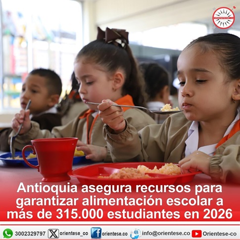 La Gobernación de Antioquia adelantó la gestión para asegurar los recursos que permitan a 315.972 estudiantes de los 116 municipios no certificados en Educación, ser atendidos desde el primer día escolar de 2026 con las raciones de alimentos del Programa de Alimentación Escolar- PAE. Esto se da luego de que la Asamblea Departamental aprobara al Departamento comprometer recursos propios y de la Nación en la vigencia futura excepcional contemplados en el proyecto de Ordenanza Nº 41.