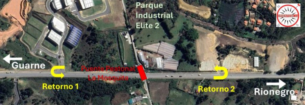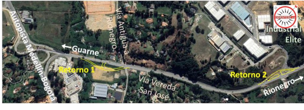 Y las otras dos obras, serán en la variante del aeropuerto a Guarne, donde se van a hacer dos pares de retornos viales para separar la vía, uno en la vereda San José de Guarne, y el otro en la vereda La Mosquita entre Guarne y Rionegro.