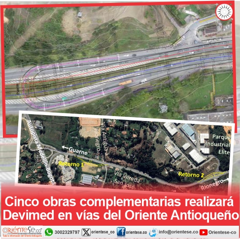 La primera de ellas, es en el acceso al municipio de San Vicente, un retorno a desnivel; una segunda obra es en Guarne, donde se construirá un paso peatonal, el cual va a ser un deprimido en el sector San Antonio, sobre la autopista, la tercera será en Marinilla, con un puente peatonal que reemplaza el semáforo de El Cordovés, y las otras dos serán en la vía aeropuerto al hipódromo en la autopista, donde se van a hacer dos pares de retornos viales para separar la vía, uno en la vereda San José de Guarne, y el otro en la vereda La Mosquita entre Guarne y Rionegro.