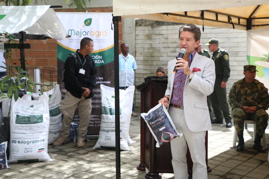 El Gobernador de Antioquia expresó, “hoy estamos presentando un programa de producción de abono, un abono cualificado, que se está produciendo desde los residuos sólidos, ya sumados todos los municipios se están produciendo 14.000 toneladas y cuando termine el año habrán 23.000 toneladas de abono, yo quisiera resaltar este proyecto de basura cero porque es un ejemplo para Colombia, si esto fuera establecido en los 1100 municipios de Colombia, la vida del país, el agua, los alimentos y la capa vegetal serían distintos”.
