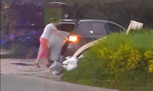 La señora de la foto, llega sin ningún estupor ni menos respeto por esta comunidad y por el entorno y baja de su vehículo varias cosas para la basura, entre ellas un colchón.