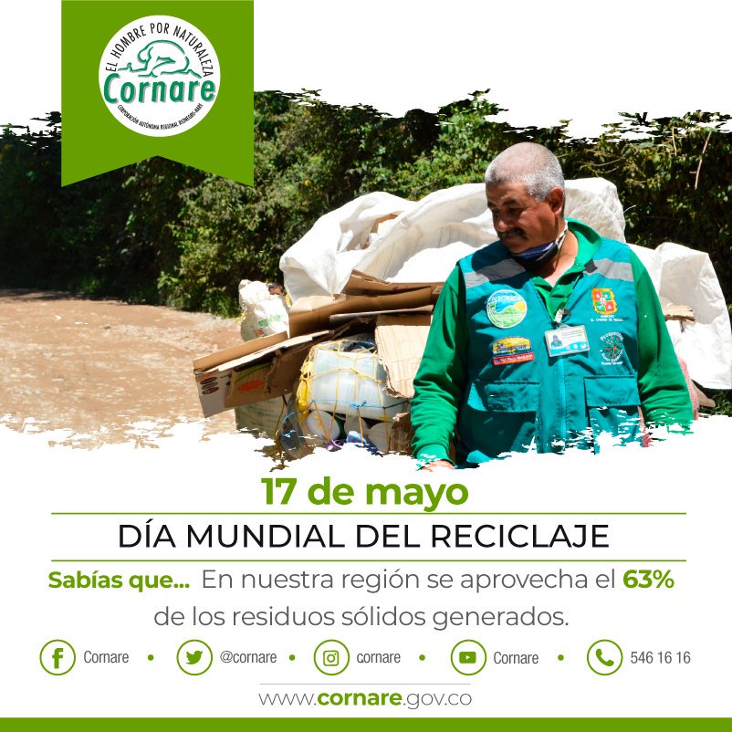 Por esta razón, hoy en el Día Mundial del Reciclaje, Cornare hizo un reconocimiento a todas las instituciones involucradas en el proceso, especialmente a los recicladores de oficio de la jurisdicción, quienes con su labor diaria contribuyen a la preservación de los recursos naturales.