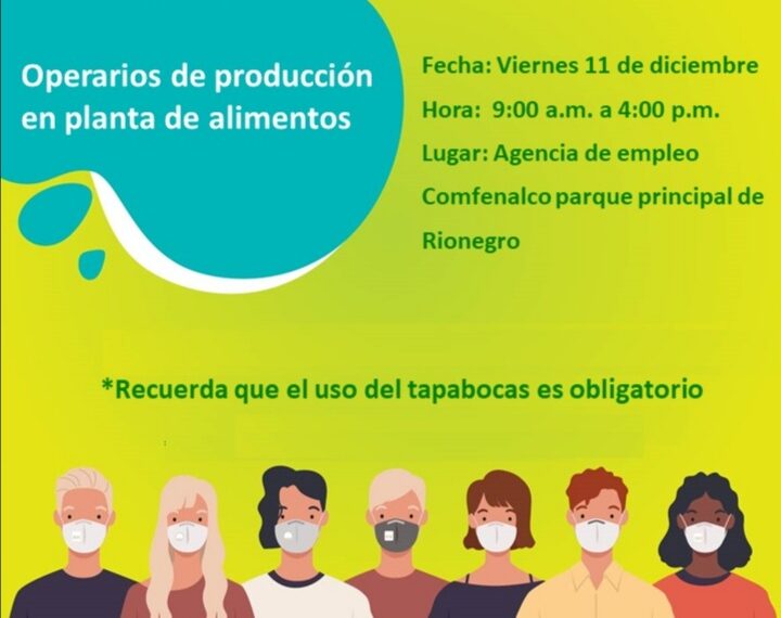 Por esto la Agencia de Empleo de Comfenalco Antioquia, estará realizando una convocatoria para operarios de producción en diferentes cargos para una planta de alimentos.