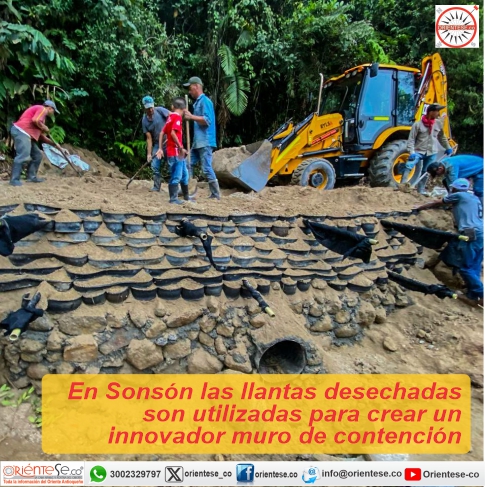 Gracias a una alianza entre la Alcaldía de Sonsón, liderada por Juan Diego Zuluaga, y la Universidad de Medellín, se implementó un innovador muro de contención denominado TireGrid en la vereda Guayaquil, corregimiento Río Verde Los Montes, a través de un sistema desarrollado por los ingenieros civiles Mario Santiago Hernández y César Hidalgo, donde reutilizan llantas desechadas para mitigar fallas en la banca, ofreciendo una solución económica y sostenible a problemas de estabilidad vial.