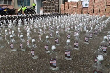 En el operativo se logró la incautación de cerca de 1500 botellas de aguardiente y ron de diferentes presentaciones (garrafa, litro, botella y media), además se hallaron sellos, tapas, alcohol y máquinas para realizar el cierre de los envases con el licor adulterado.