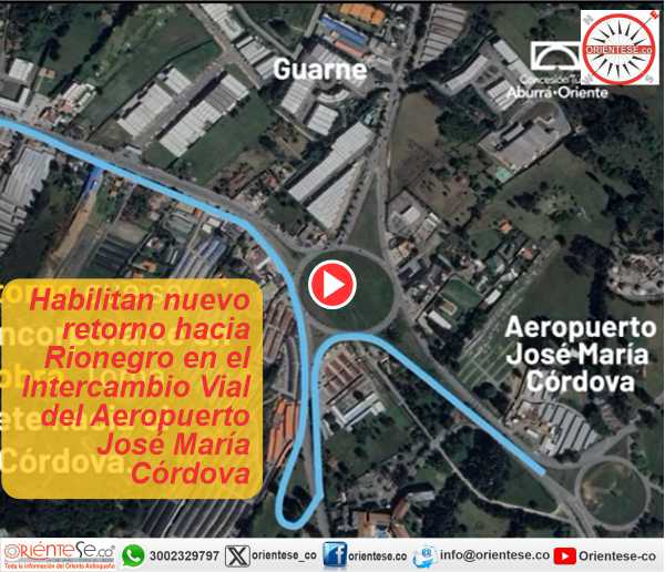 En este sentido, los vehículos que se desplacen desde el Túnel de Oriente o Guarne hacia el aeropuerto José María Córdova, deberán implementar una nueva maniobra luego del desvío actual en la glorieta Sajonia, tomando el retorno sur en la vía hacia Llanogrande para continuar su ruta.