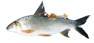 Los peces capturados, de determinado tamaño y según la especie, serán medidos, identificados taxonómicamente y se les pondrá en la aleta dorsal una marca con un número dentro de un tubo plástico de tres centímetros, como lo muestra la imagen: