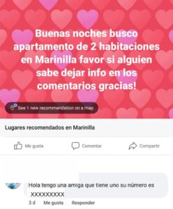 Este es el caso de Leidy, una jóven de Marinilla, quien ante la necesidad de conseguir con urgencia un apartamento para arrendar, hizo una publicación en uno de los tantos grupos que hay para estos fines.