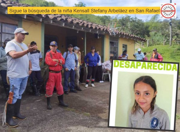 Desde la Alcaldía de San Rafael, han confirmado que con diferentes operativos en la zona, en colaboración del Ejército, la Policía, los bomberos y algunos miembros de la comunidad, están en la búsqueda de Kendall Stefany, para dar con su paradero o tener pistas que den con su ubicación.