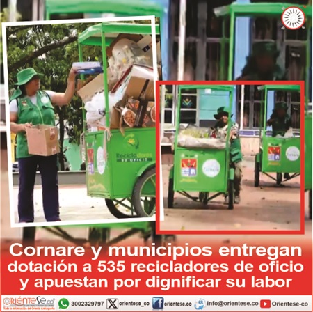 En el marco de las acciones de los programas de Manejo Integral de Residuos Sólidos (MIRS), Cornare, en convenio con las administraciones municipales, está entregando dotación a 535 recicladores de oficio de los municipios de su jurisdicción, con el objetivo de apoyar y dignificar su labor como actores clave en la gestión adecuada de los residuos.