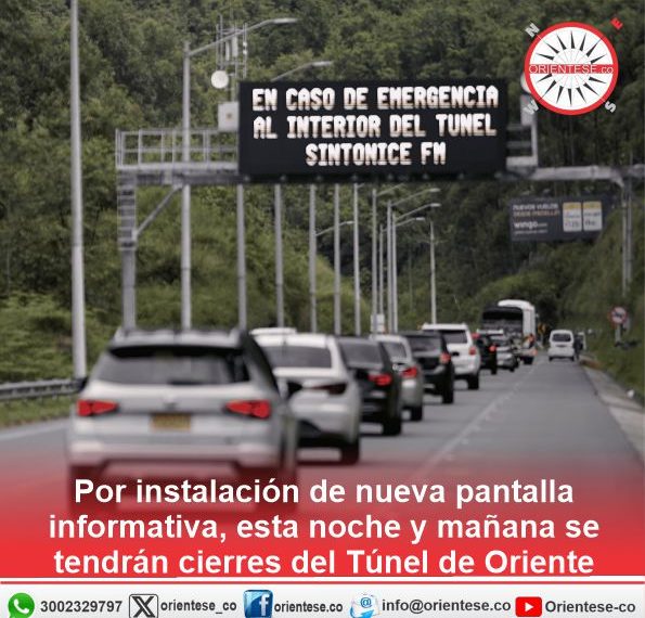 Esta noche de miércoles 29 y mañana jueves 30 de abril, la Concesión Túnel Aburrá Oriente, informó que se presentarán cierres totales de cuatro horas en la conexión vial del Túnel.