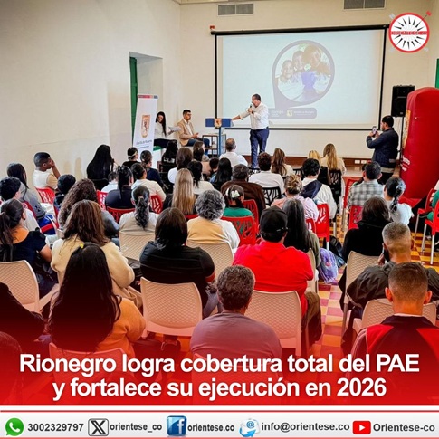 El municipio de Rionegro realizó con éxito la Primera Mesa Pública del Plan de Alimentación Escolar (PAE) 2026, un espacio participativo que permitió socializar resultados y ratificar el compromiso institucional con la nutrición, la permanencia escolar y el desarrollo integral de los estudiantes.