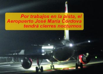 Por trabajos en la pista, el Aeropuerto José María Córdova tendrá cierres nocturnos