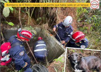 Bomberos de El Retiro rescata a un perrito que había caído en un tanque
