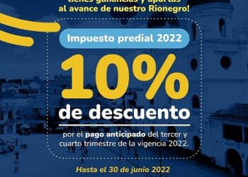 Hasta mañana 30 de junio cancele por adelantado su impuesto predial en Rionegro y ahorre el 10%
