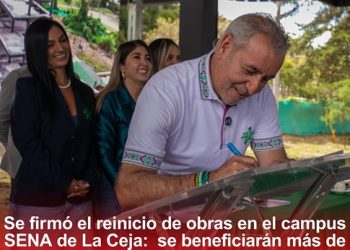 Se llevó a cabo en el municipio de La Ceja la firma del acta de reinicio de obras del campus ...