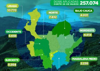 El más reciente reporte de ayer 29 de marzo señala que Antioquia administró 23.171 nuevas dosis de la vacuna contra ...
