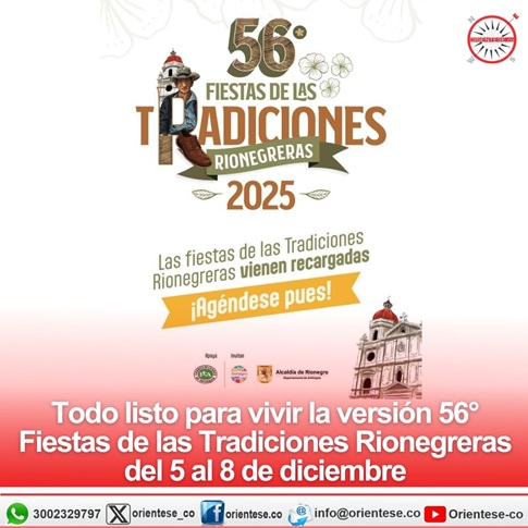 Rionegro está listo para vivir uno de los eventos más esperados del año: la versión 56° de las Fiestas de las Tradiciones Rionegreras, una celebración que llega renovada, fortalecida y cargada de programación para toda la familia. Del 5 al 8 de diciembre, propios y visitantes podrán disfrutar de una agenda que combina sus raíces campesinas, el talento artístico local y los espectáculos musicales que harán vibrar los principales escenarios en la localidad.
