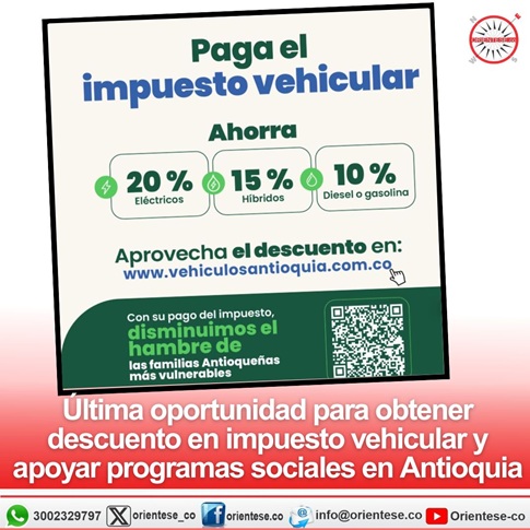 En un contexto donde el financiamiento de programas sociales depende en gran medida de los recursos territoriales, el pago oportuno del impuesto vehicular se convierte no solo en un deber ciudadano, sino en un aporte directo al bienestar de miles de hogares en Antioquia.